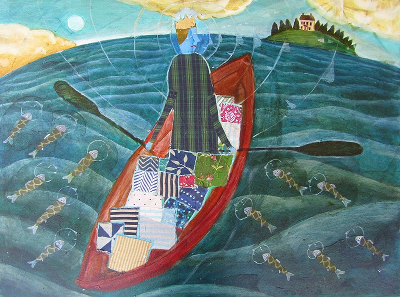 “I have been exploring the place where fine art and folk art intersect,” said artist Donald Saaf. “My subject matter draws from the local experience of community, family and immediate surroundings as well as an internal dream place. Although some of the imagery is very personal, I am always striving for the universal. The figures in the pictures are simultaneously ‘me’ and a sort of ‘Everyman’. At times I approach a composition like a quilt, or even a stained glass window; breaking down the composition into luminous forms and shapes. I try to see the pictures simultaneously both for their ‘story’ and as pure abstraction. I’m interested in memory; the memory of place and experience. It’s the moment that happens when the external world overlaps with the internal world.”