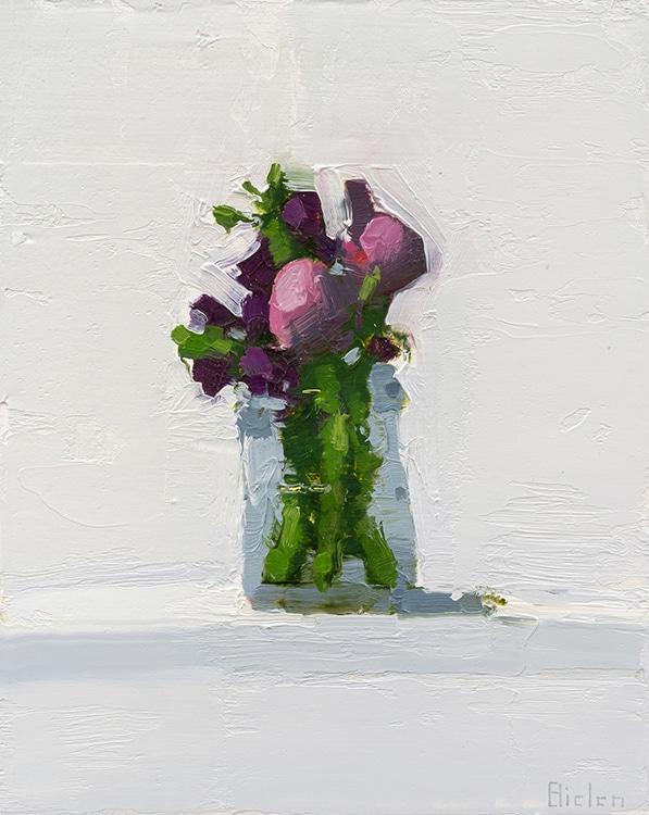 Stanley Bielen’s still-life paintings pay homage to the tradition of European art while infusing his works with personal intimacy and emotional depth. Using flowers and fruit from his own garden, Bielen creates richly textured oil paintings that capture the fleeting beauty of his subjects, set against velvety, luminous backgrounds. His loose, brushy interpretations of still life evoke a sense of quiet reverence, where each brushstroke reflects both his connection to nature and his exploration of color and form. Bielen’s work is a celebration of the timeless and the fleeting, embodying a deep appreciation for the visible world and the transformative power of oil paint.